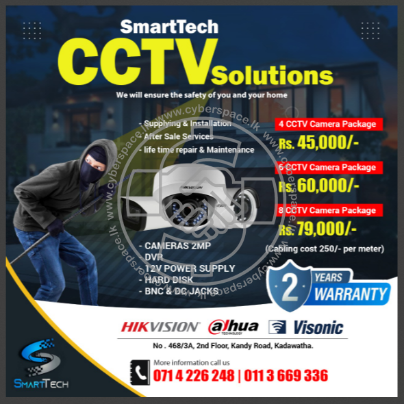 "අපි ඔබේ අවශ්යතා මත පදනම්ව විවිධ CCTV පැකේජ පිරිනමන්නෙමු. අපගේ පැකේජවලට උසස් තත්ත්වයේ Smart hybrid 2MP කැමරා, 4 නාලිකා Turbo HD DVR, 12V 2A බල සැපයුමක්, 500GB දෘඪ තැටියක් සහ අවශ්ය සියලුම සම්බන්ධක ඇතුළත් වේ.