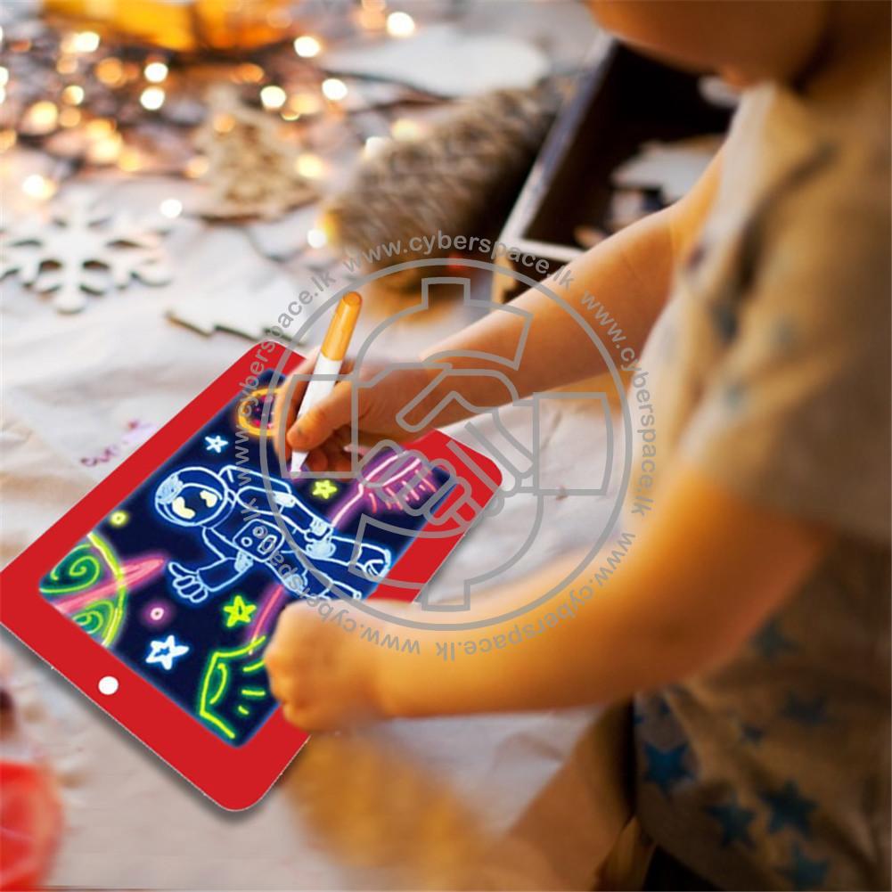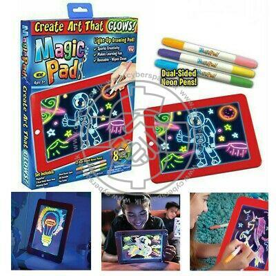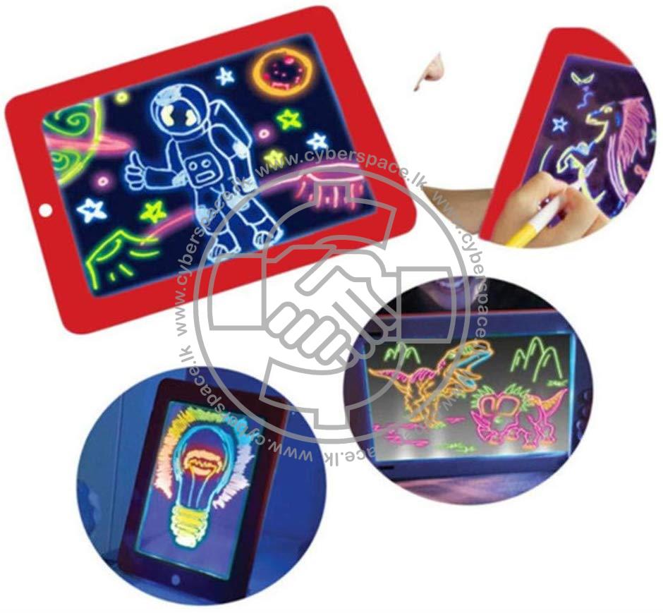 Magic Pad is an Electronic Sketch Pad that gives Life to your child's Art. As We are living in a Modern Society Children these days spend most of their time with Smart phones, Televisions and Other electronic devices. So With this device get your Kid back in track and improve their Art interest and the knowledge. With this magic pad toy you can spend your valuable time with child. It comes with luminous easel and 8 distinct light effects with 2 suction cups on the rear for hands-free fun. For simple storage, neon markers clip to the pack. As its a battery powered device you have to insert 3 AAA size batteries to it.