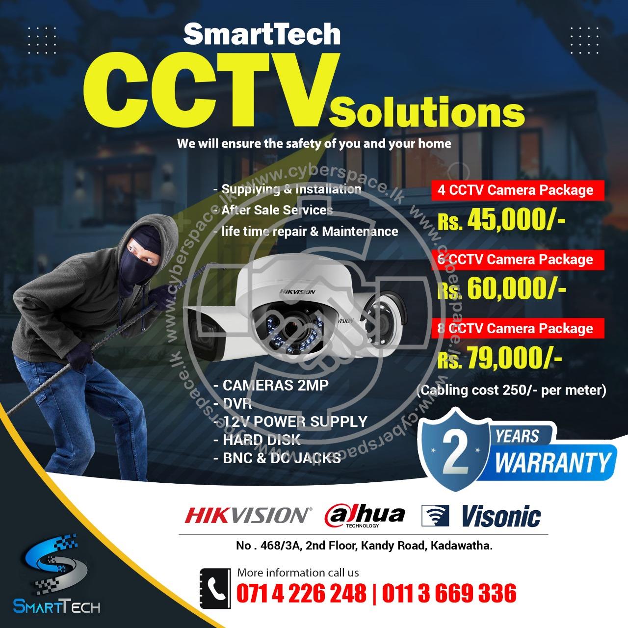 "This package includes four 2MP cameras, suitable for small homes or offices. It comes with a DVR, a 12V power supply, and a hard disk for recording."
