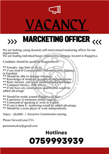 looking for a young dynamic self motivated marketing officer for our organization
