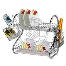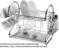 2 Tier Stainless Steel Kitchen Rack with ample space to neatly store your daily use crockery and cutlery. Made of premium durable Stainless Steel, Rust Resistant, Easy To Assemble And Clean. Wall Mountable with removable strong Plastic Drip Tray.