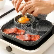 4-hole Omelet Pan: the egg frying pan features 4 compartments to make cooking quick and easy.you can to frying 4 eggs or burger and the like at the same time for your husband and children.